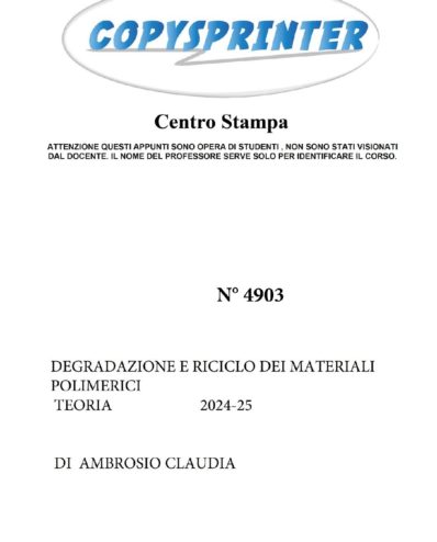4903 – DEGRADAZIONE E RICICLO DEI MATERIALI POLIMERICI