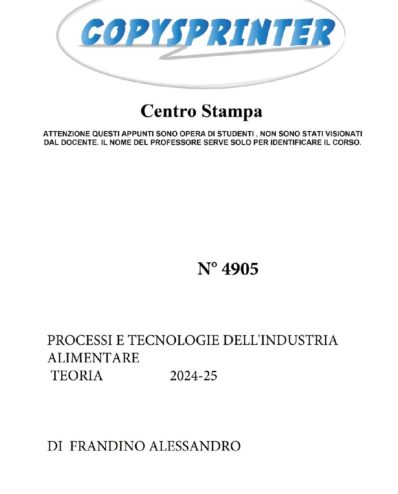 4905 – PROCESSI E TECNOLOGIE DELL’INDUSTRIA ALIMENTARE